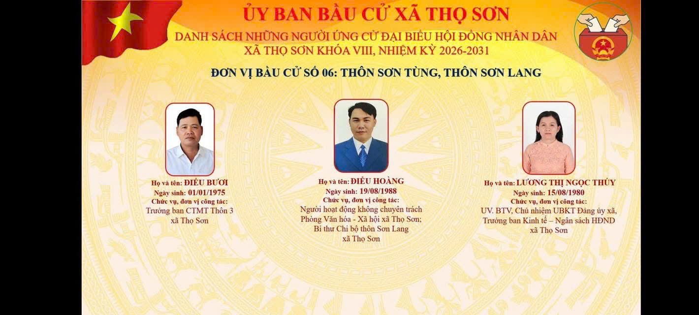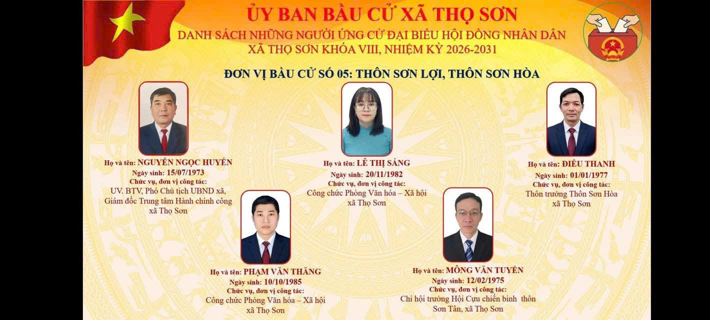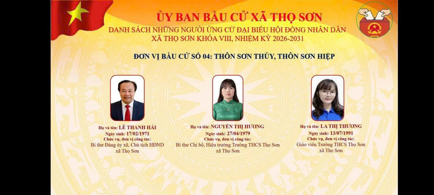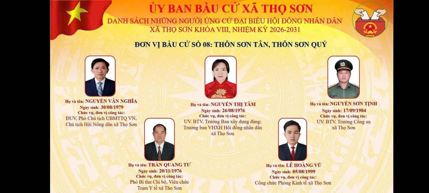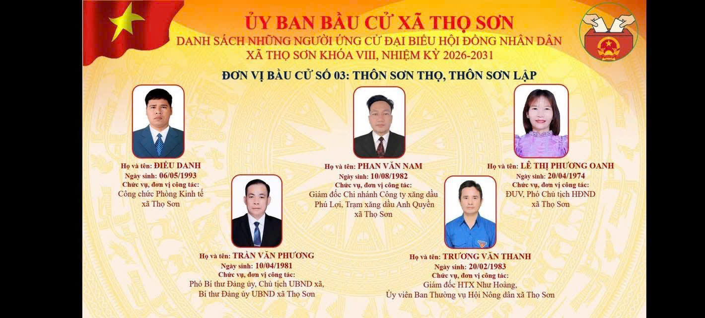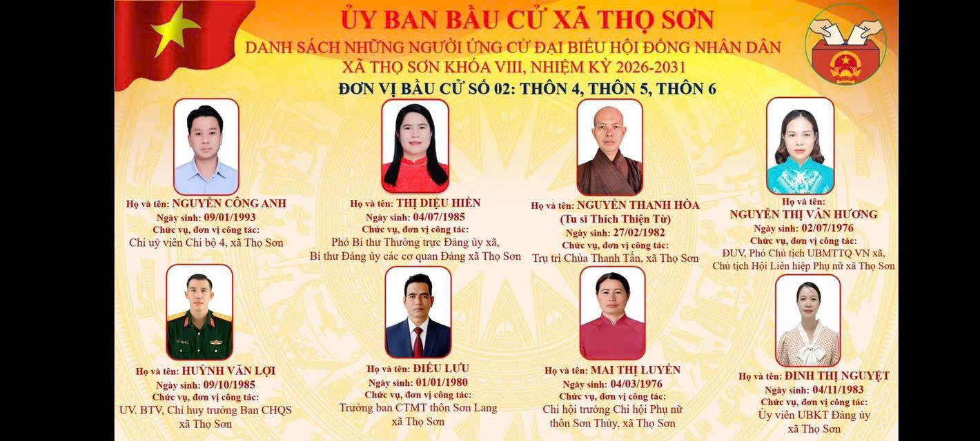 Danh sách ứng cử viên ứng cử Đại biểu HĐND xã Thọ Sơn, nhiệm kỳ 2026 - 2031