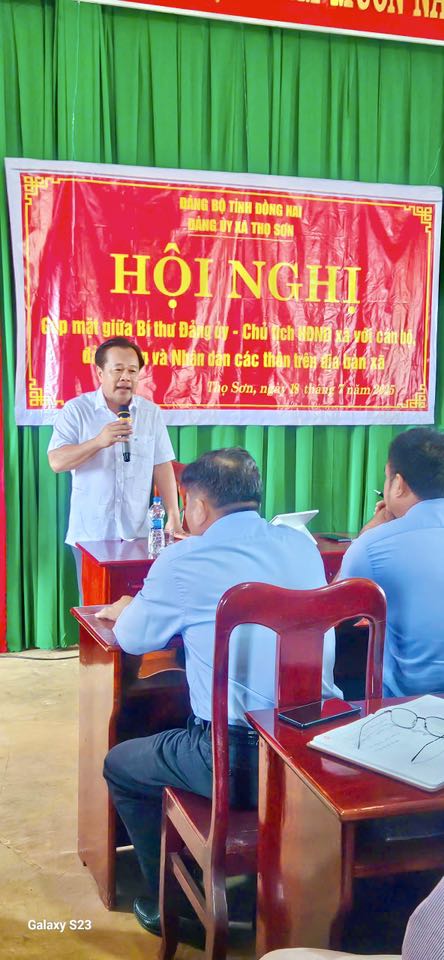 Sáng ngày 18/7/2025, tại Hội trường Thôn 4, xã Thọ Sơn (thuộc xã Đồng Nai cũ), Đồng chí Lê Thanh Hải, Bí thư đảng ủy – CT.HĐND xã Thọ Sơn đã có buổi gặp mặt với cán bộ, đảng viên và Nhân dân các thôn 1,2,3,4,5 và 6.