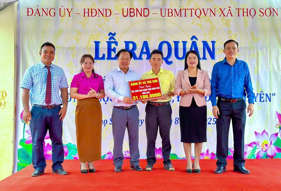 Nhân dịp này, lãnh đạo xã cũng đã trao công trình sửa chữa nhà cho một đảng viên có hoàn cảnh khó khăn về nhà ở, thể hiện sự quan tâm, chia sẻ của chính quyền địa phương đối với người dân.