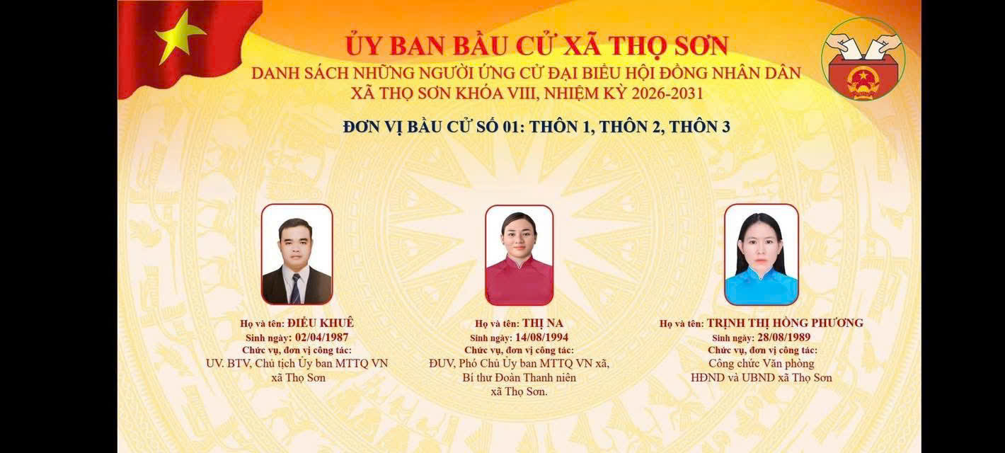 <meta property="og:title" content="Danh sách ứng cử viên ứng cử Đại biểu HĐND xã Thọ Sơn, nhiệm kỳ 2026 - 2031">