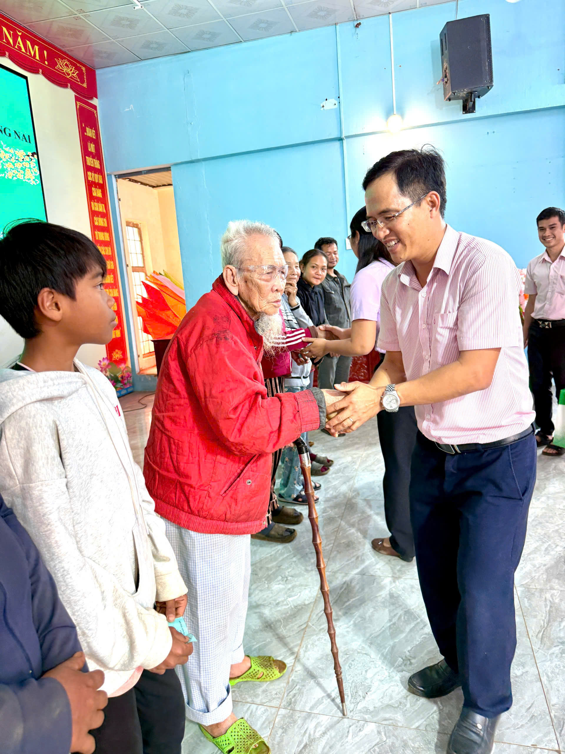 Chiều ngày 02/02/2026, Đảng ủy – HĐND – UBND - Ủy ban MTTQ Việt Nam xã Thọ Sơn phối hợp với Công đoàn cơ sở Ngân hàng Chính sách xã hội (NHCSXH) tỉnh Đồng Nai do ông Hạp Tiến Khoa Giám đốc Phòng Giao dịch NHCSXH Bù Đăng thay mặt Công đoàn cơ sở tỉnh Đồng Nai tổ chức chương trình trao quà Tết cho các hộ có hoàn cảnh khó khăn trên địa bàn xã.